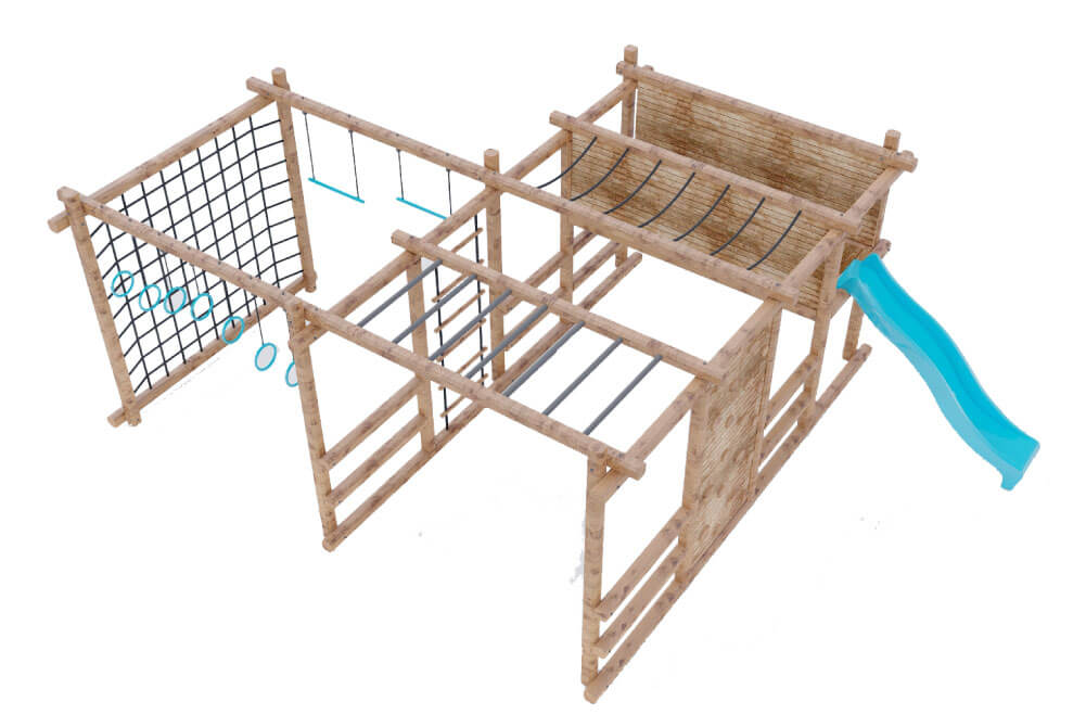 Una vez aprobado el diseño, comienza la fabricación. Nos enorgullece utilizar madera inmunizada, secada al vacío, resistente a la humedad, hongos e insectos. Esta tecnología nos permite crear parques que soportan las condiciones más extremas, garantizando durabilidad y resistencia para muchos años de juego.